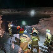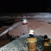 Anschließend bereitete eine kleine Gruppe beim Kuchler Bürgerausee ein Übungsszenario mit einem eingebrochenen Eisläufer vor. Die restliche Mannschaft rückte gemäß den Ausrückeordnungen der Feuerwehr Kuchl zum angenommenen Einsatz aus.