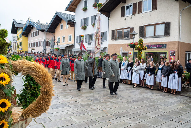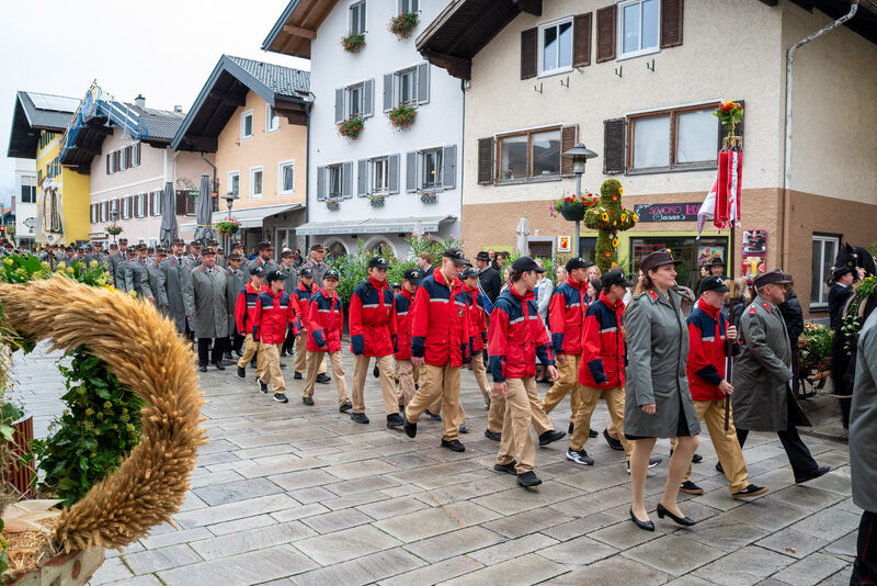 Am Sonntag, den 28. September, nahm die Freiwillige Feuerwehr Kuchl am traditionellen Erntedankfest teil. Trotz Regenwetters versammelten sich zahlreiche Vereine und die Kuchler Bevölkerung in der Marktstraße. Dort segnete Pfarrer Naidu Prakasam die kunstvoll gefertigte Erntedankkrone, musikalisch begleitet von der Musikkapelle Kuchl und dem Kindergartenchor.