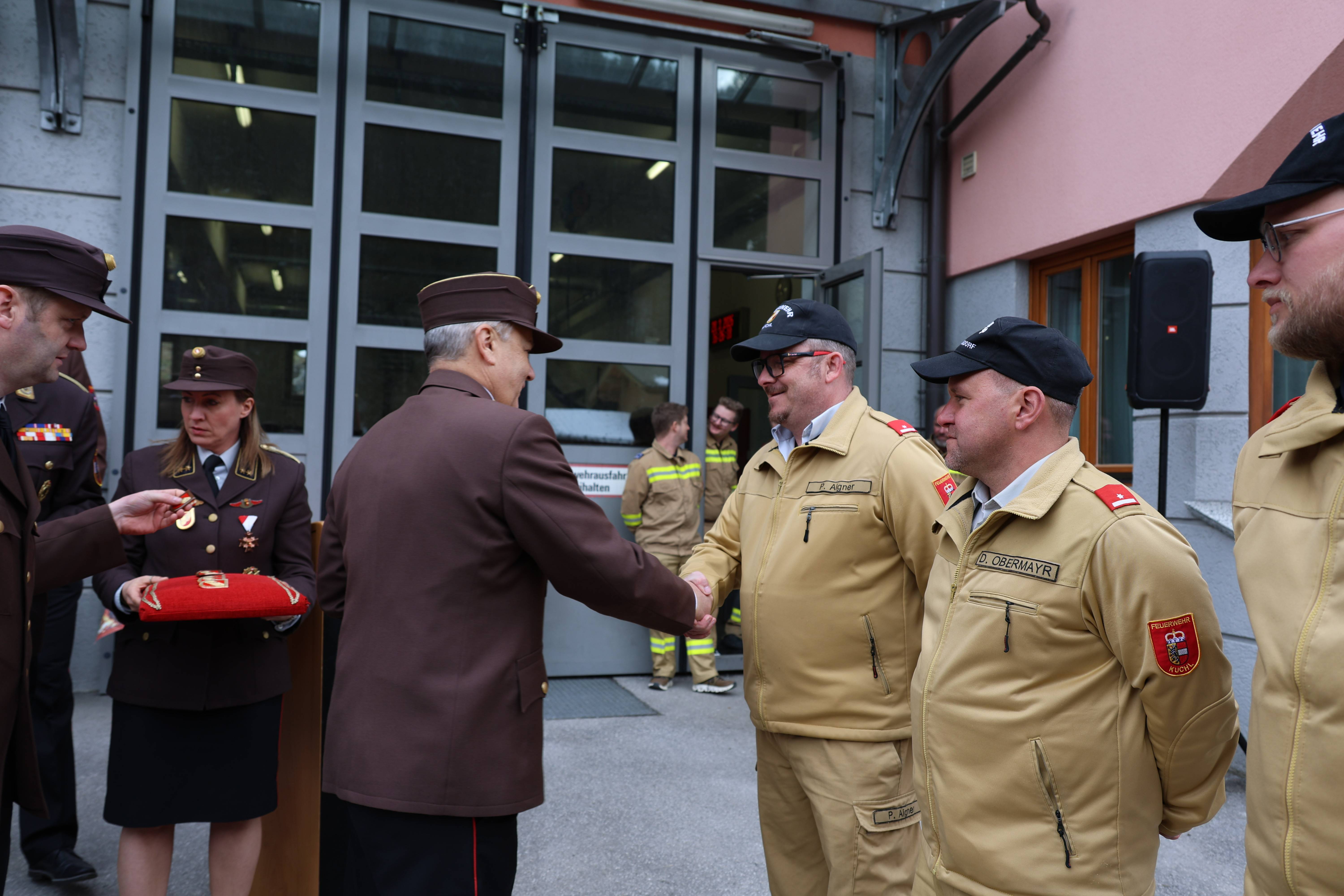Es war sehr erfreulich, dass wir viele Ehrengäste begrüßen durften. Von der Feuerwehr Kuchl beehrten uns AFK BR Rupert Unterwurzacher, ABI Gerhard Scherfl, HBI Johannes Struber und HV Bernhard Saringer.