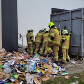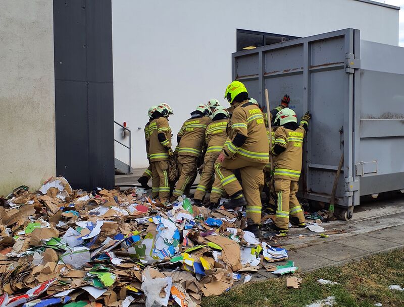 Bereits bei der Anfahrt wurde gemeldet, dass sich der Papiercontainer innerhalb des Gebäudes befindet, was die Lage zusätzlich erschwerte. Die Evakuierung der anwesenden Personen war zu diesem Zeitpunkt bereits im Gange.